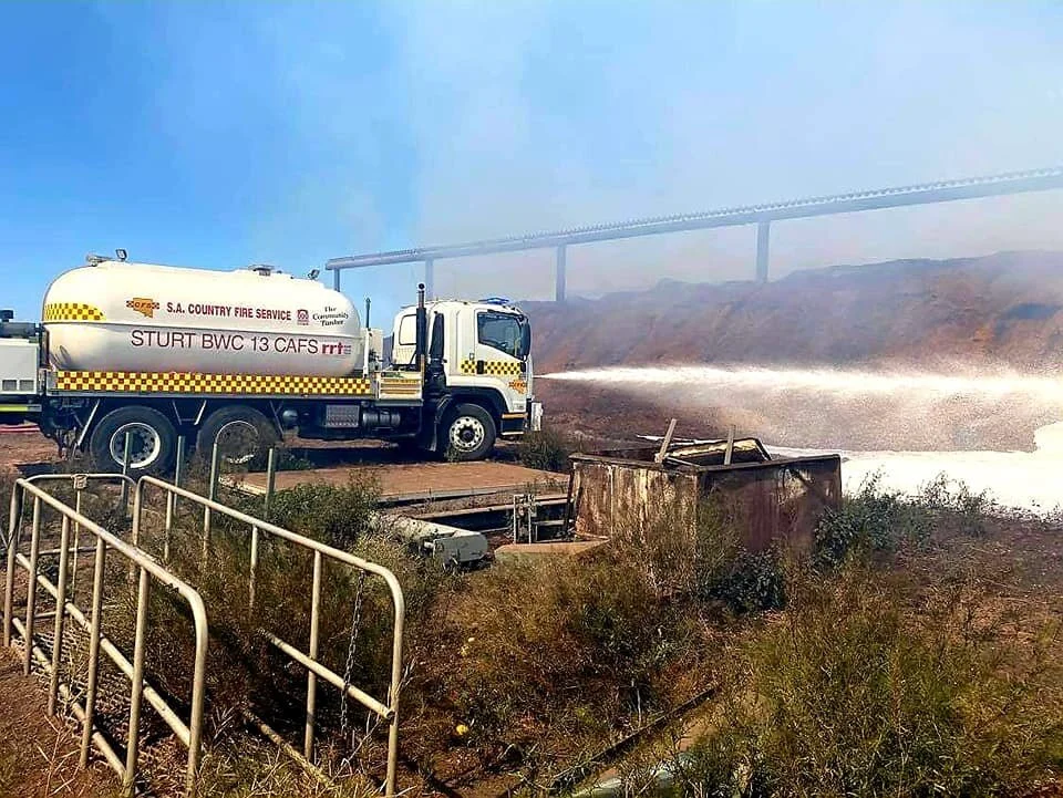 On Sunday the 6th of September firefighters were responded to a fire at the Almond Co packing facility at Pike River, near Renmark in the Riverland. Not only were a semi-trailer and a loader destroyed by fire, crews also found the very large almond husk piles alight. Due to the size and nature of the fire, local Riverland CFS crews were unable to extinguish using normal rural tactics. The almond husk piles where extremely large and fire was burning deep inside the mounds.